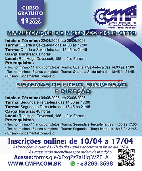 Faça sua Inscrição AQUI 1º Semestre 2026